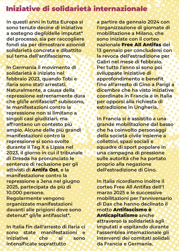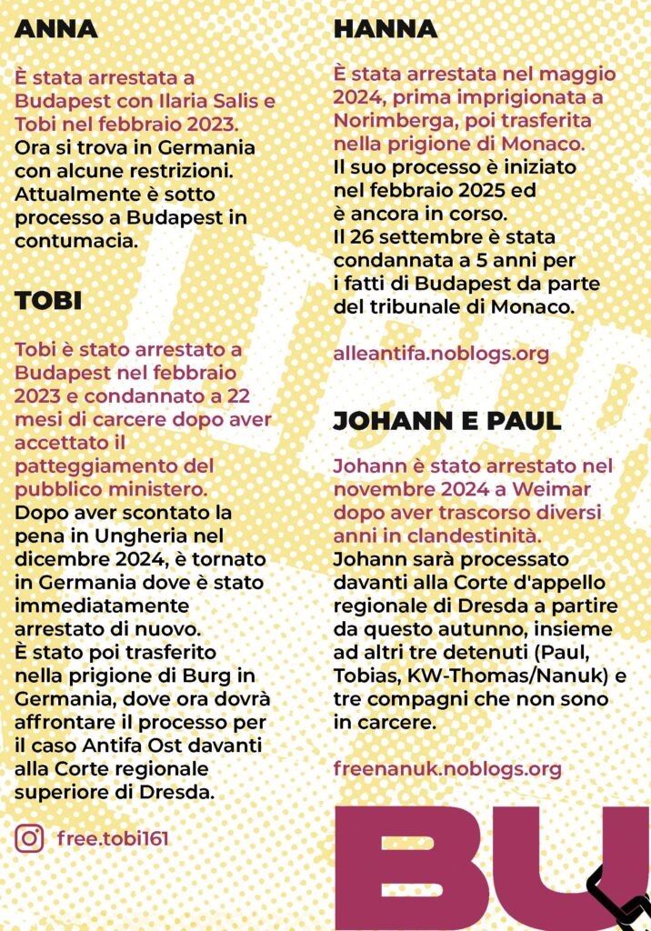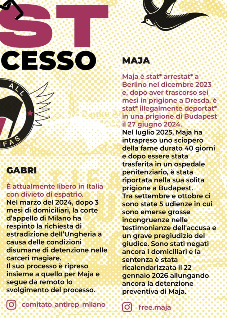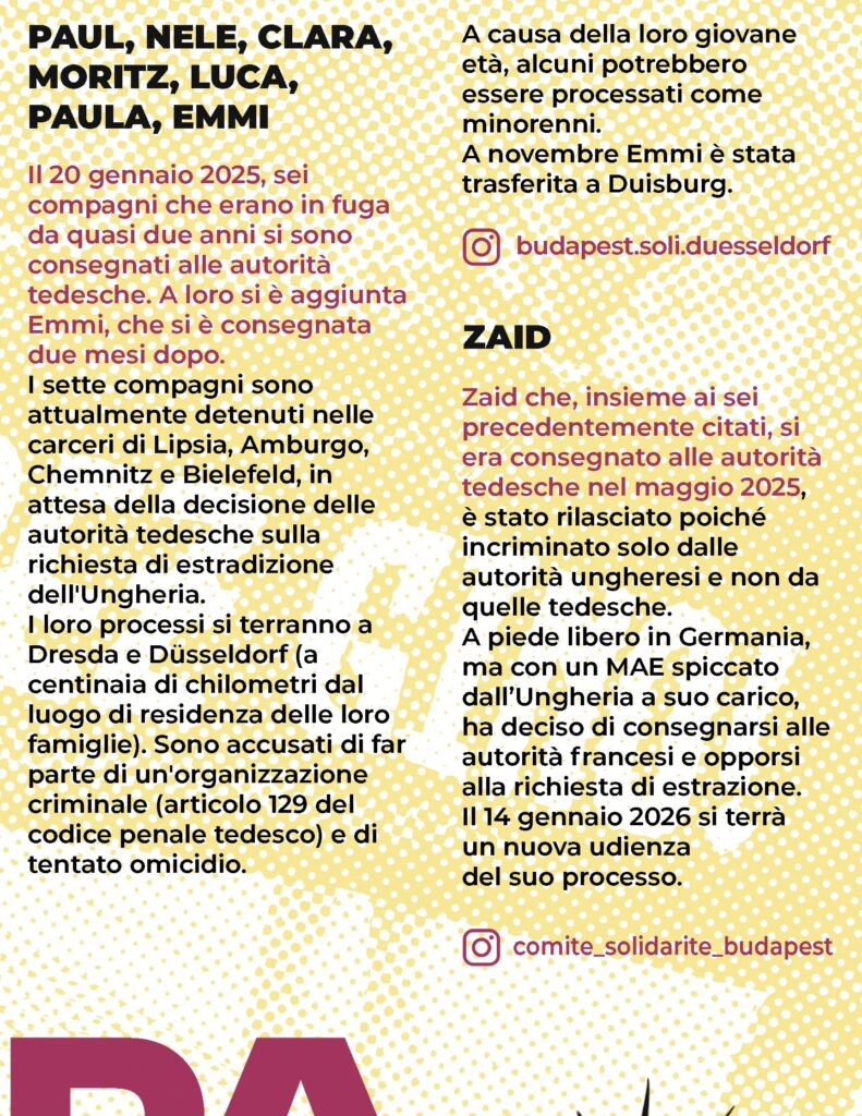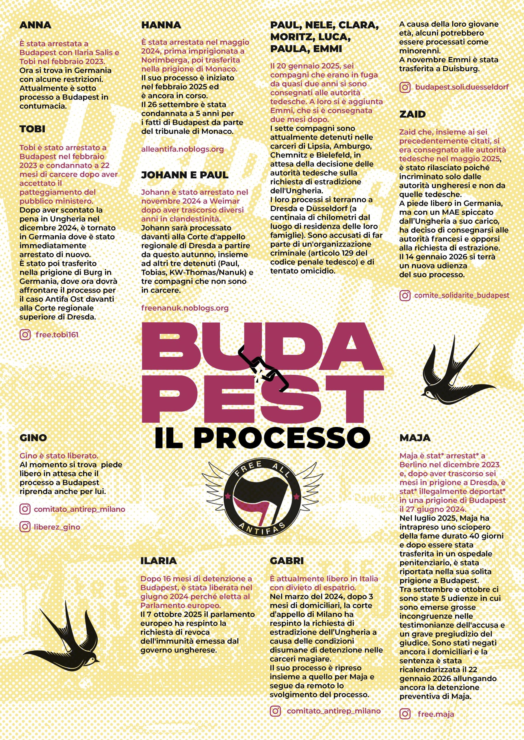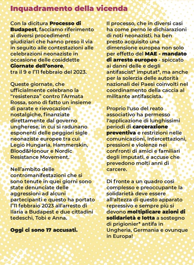 I testi vengono aggiornati mensilmente con le novità sul processo e sulla situazione degli imputatX. Invitiamo chiunque voglia supportare la causa a stampare e diffondere!