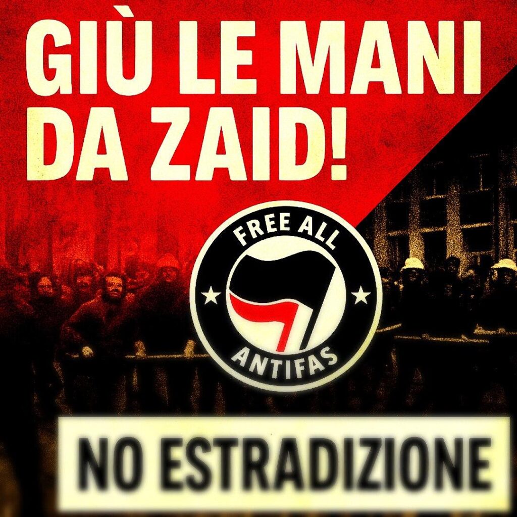 Da qui a quella data, è quindi urgente dare risalto mediatico al caso di Zaid, mobilitare l’opinione pubblica per impedire la sua estradizione ed esigere la cessazione di tutte le azioni legali relative a questo scandaloso caso. Mentre l’estrema destra moltiplica le violenze in tutta Europa e si prepara alla guerra civile, sono gli antifascisti ad essere perseguitati!